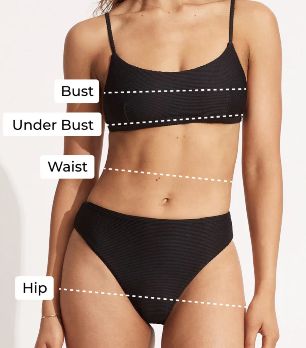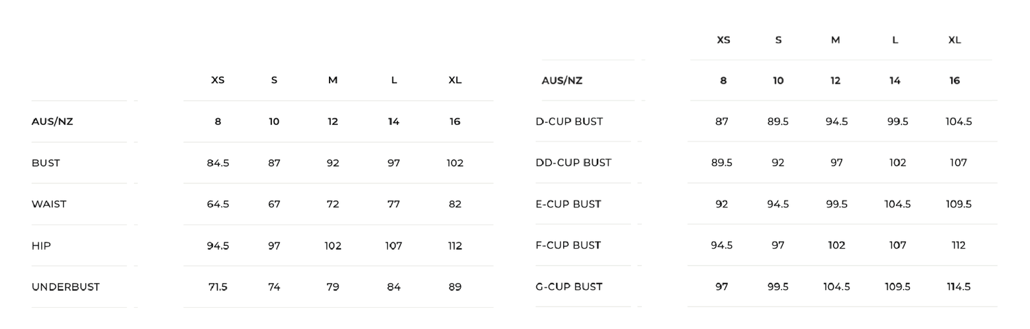 BUST - Measure across the fullest part of your bust and straight around the back to determine your cup size.
