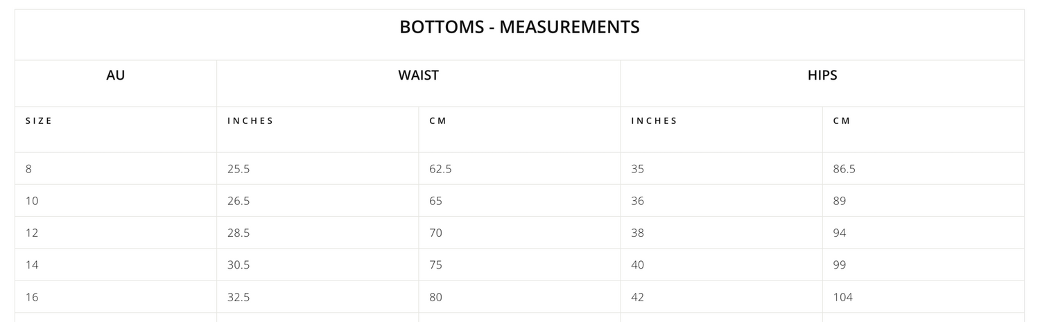 WAIST - Measure the narrowest part of your waist, below the ribcage and above your hip bone.